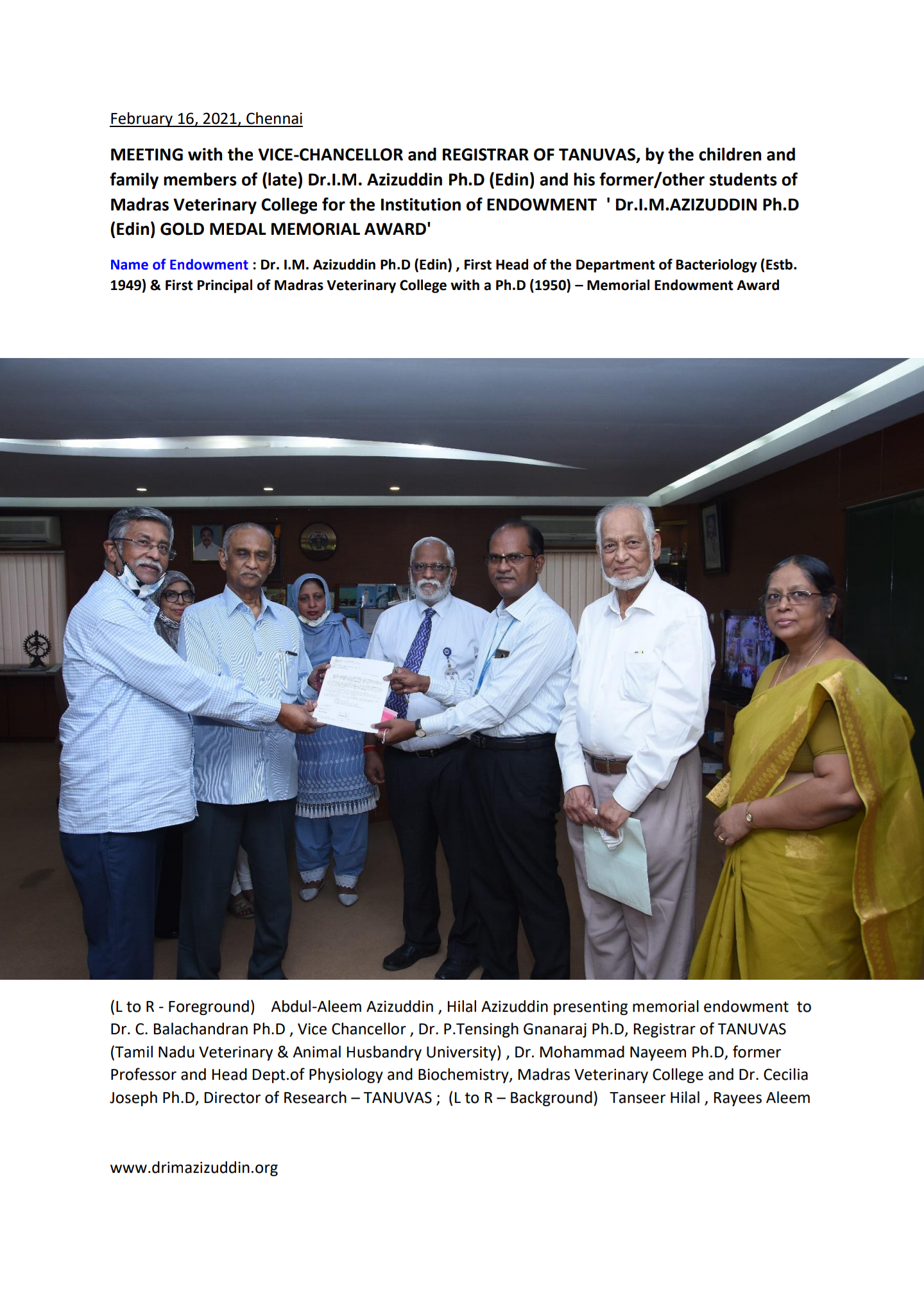 The announcement of Dr. I.M. Azizuddin is 07th in the sequence of NEW ENDOWMENTS (roughly at 0,54)